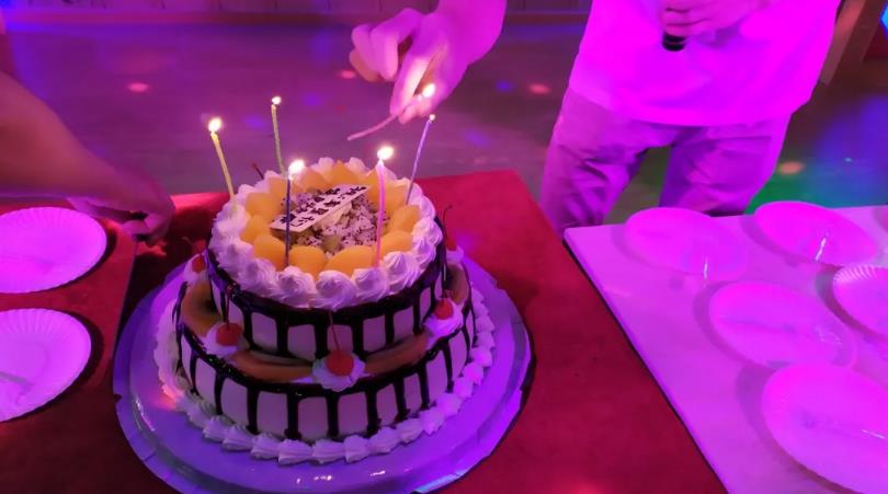 晚会上,当熟悉的旋律生日快乐响起时,映衬着摇晃的烛火,印出了一张张幸福的笑脸.....